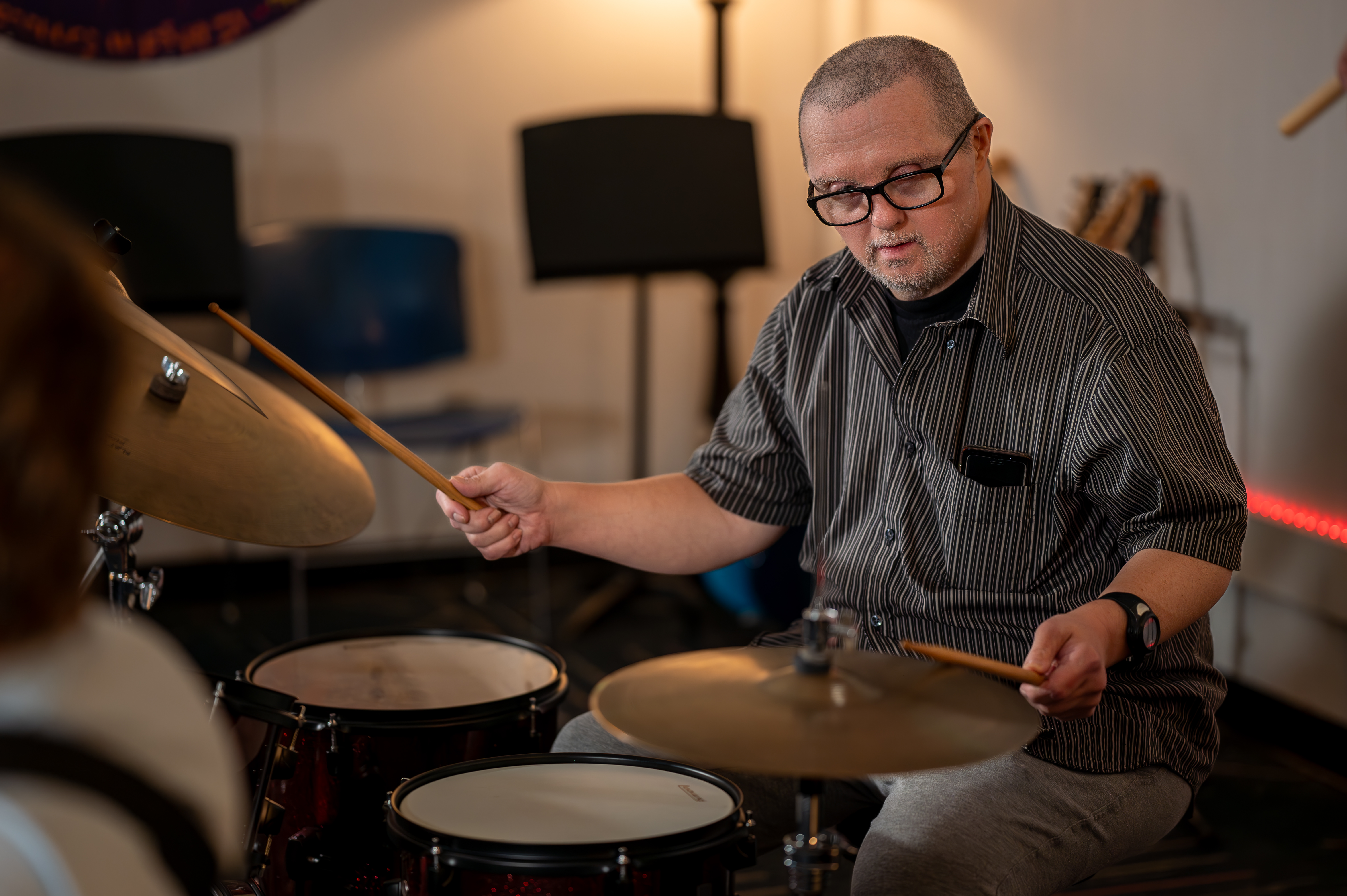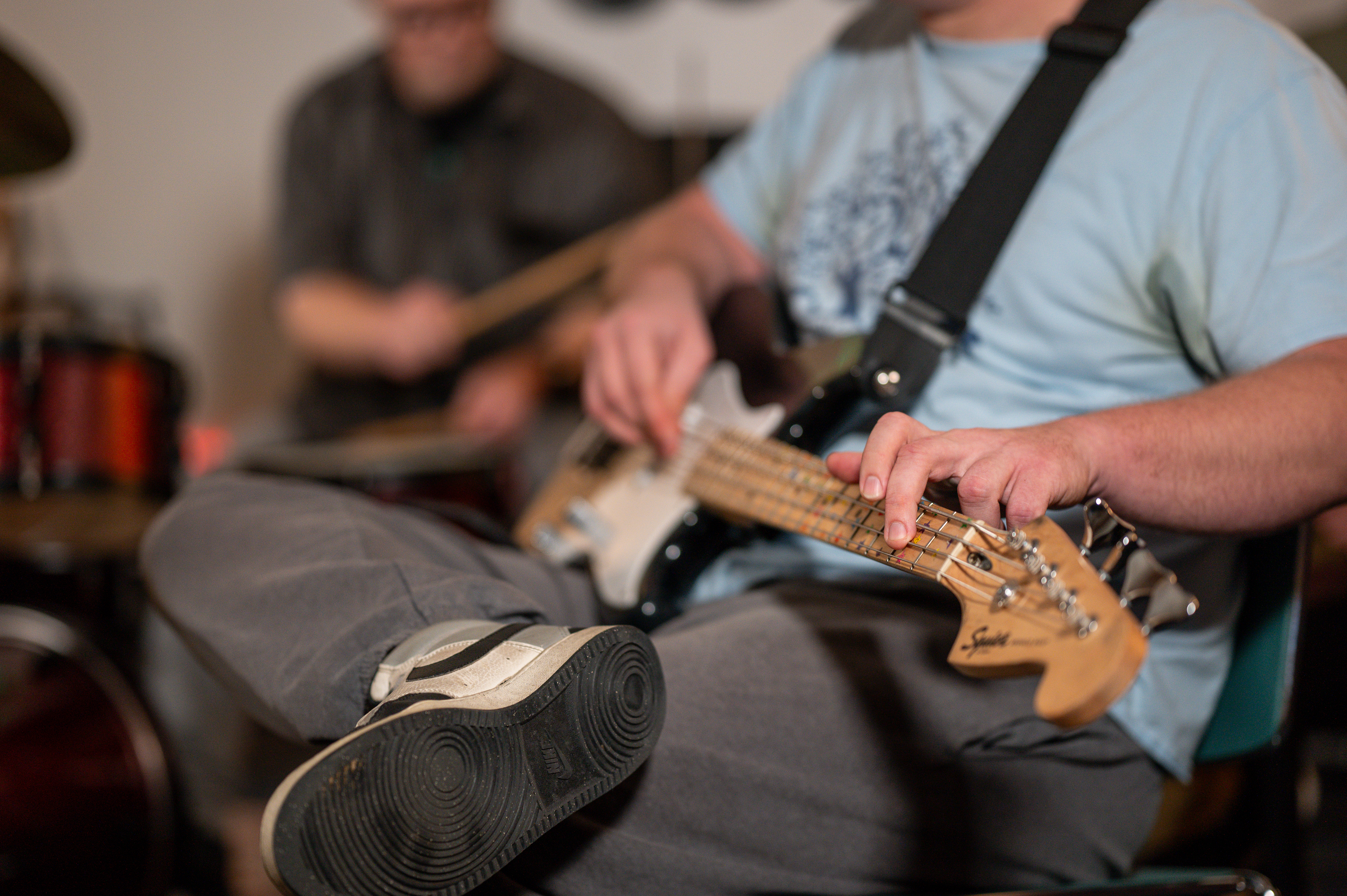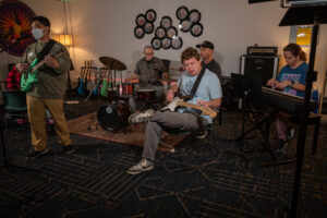 Teens and adults with developmental disabilities in HOH’s Music Therapy Rock Band program participate in a unique music therapy setting while learning valuable life skills. Band members learn to play instruments, choose songs, rehearse as a band, and even perform all while learning pre-vocational and life skills such as planning, decision-making, teamwork, coping skills, and independence.